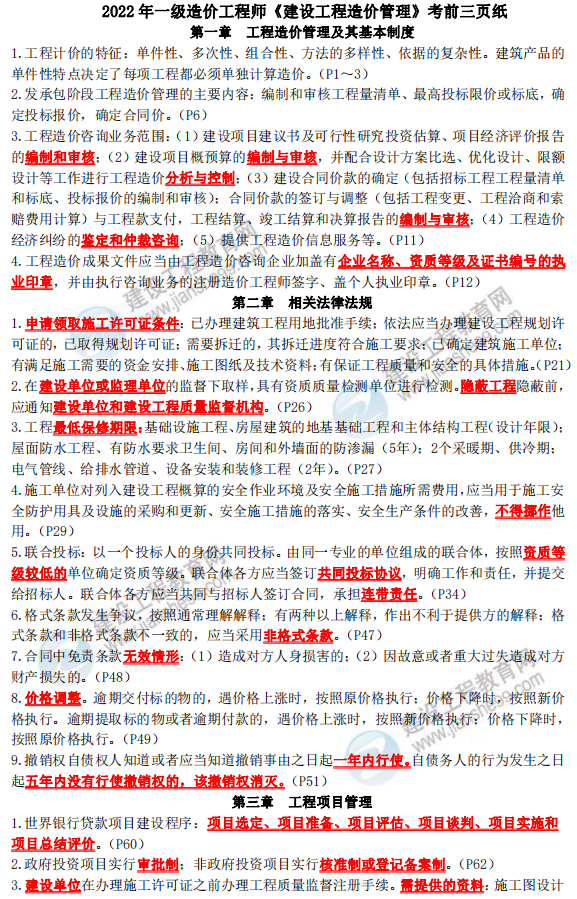 抓住考前稻草!2022一級造價師考前三頁紙 免費領(lǐng)??!