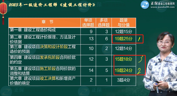 疑問二:2023年一級造價師工程計價各章節(jié)分值分布?