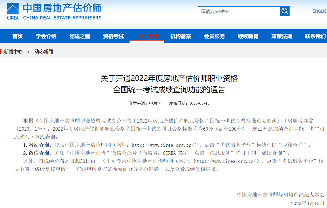 2022年房地產(chǎn)估價師考試成績查詢?nèi)肟谠?月13日開通!