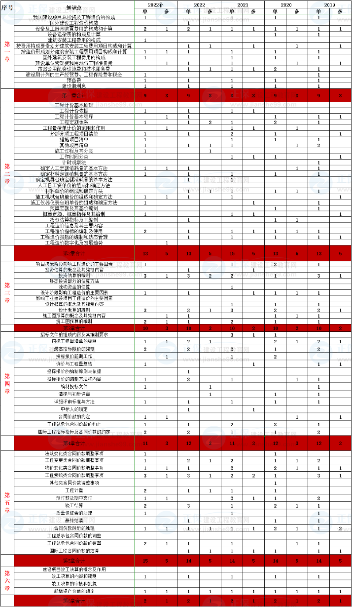 一級造價師工程計價歷年各章節(jié)分值分布!