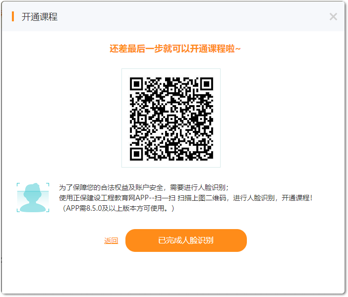 3.掃碼進(jìn)行人臉識(shí)別,識(shí)別后進(jìn)入看課;提示:APP需8.5.0及以上版本方可使用。