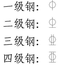 抗拉強度2400kg/cm平方稱1級鋼筋,圖紙上用ф表示(箍筋一般采用一級鋼用“φ”表示);