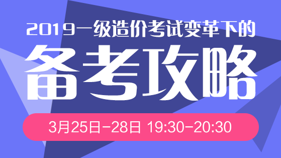 2019年一級造價工程師考試內容重大變革之下的備考攻略直播時間為3月25日至28日19:30-20:30,如果你想知道如何學習才能更高效?零基礎考生應該從哪入手?老考生復習是否有更好的復習方法?那就趕快報名參與直播吧!