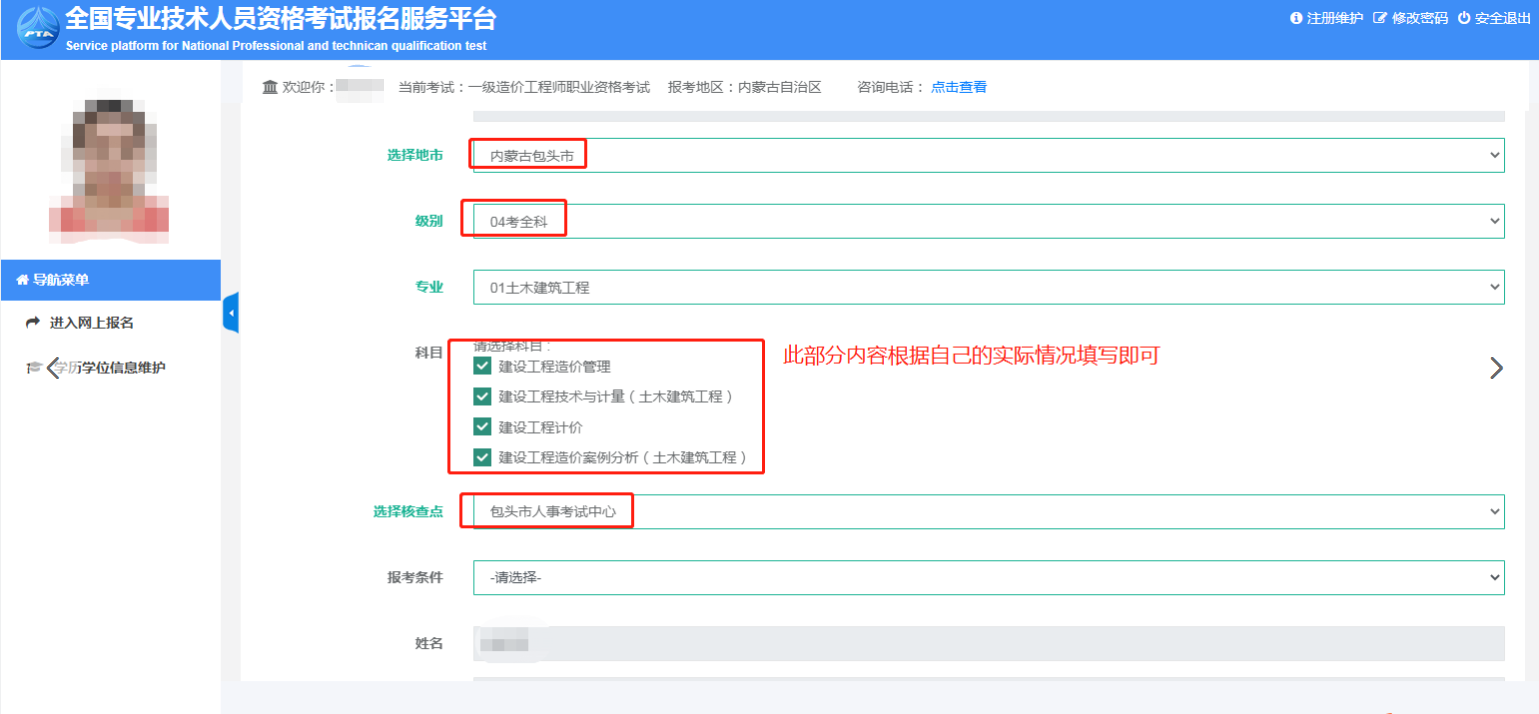 6.填寫如下信息,注意:一定要填寫真實信息,網(wǎng)上要進行初審。級別、報考專業(yè)、報考科目可以根據(jù)自己的實際情況進行選擇。