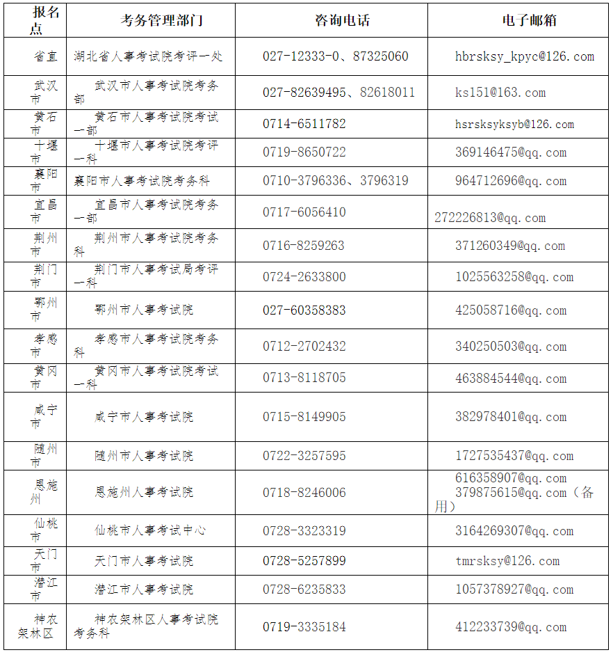 湖北省各人事考試機(jī)構(gòu)咨詢電話