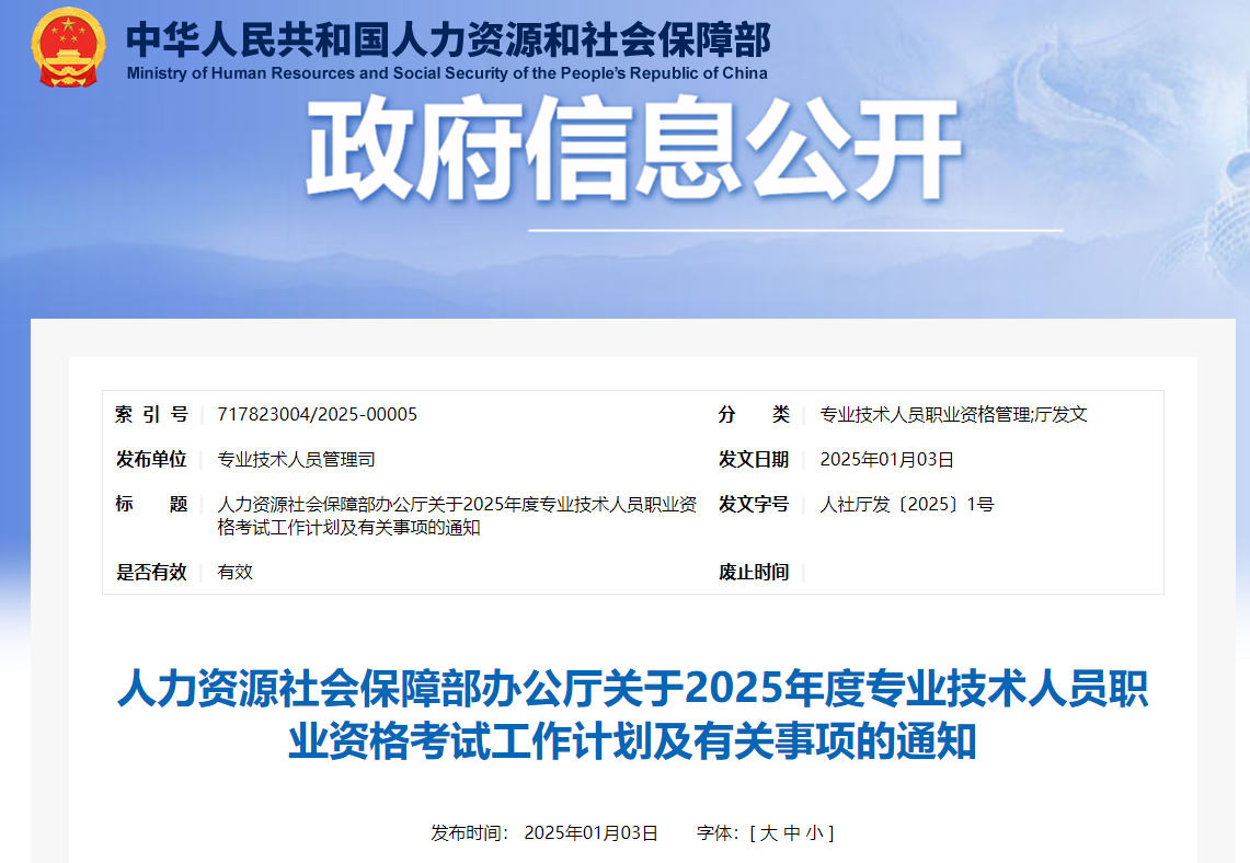 為做好專業(yè)技術(shù)人員職業(yè)資格考試規(guī)劃和管理工作,便于廣大專業(yè)技術(shù)人員參加職業(yè)資格考試,經(jīng)商有關(guān)部門同意,現(xiàn)就2025年度專業(yè)技術(shù)人員職業(yè)資格考試工作計(jì)劃及有關(guān)事項(xiàng)通知如下: