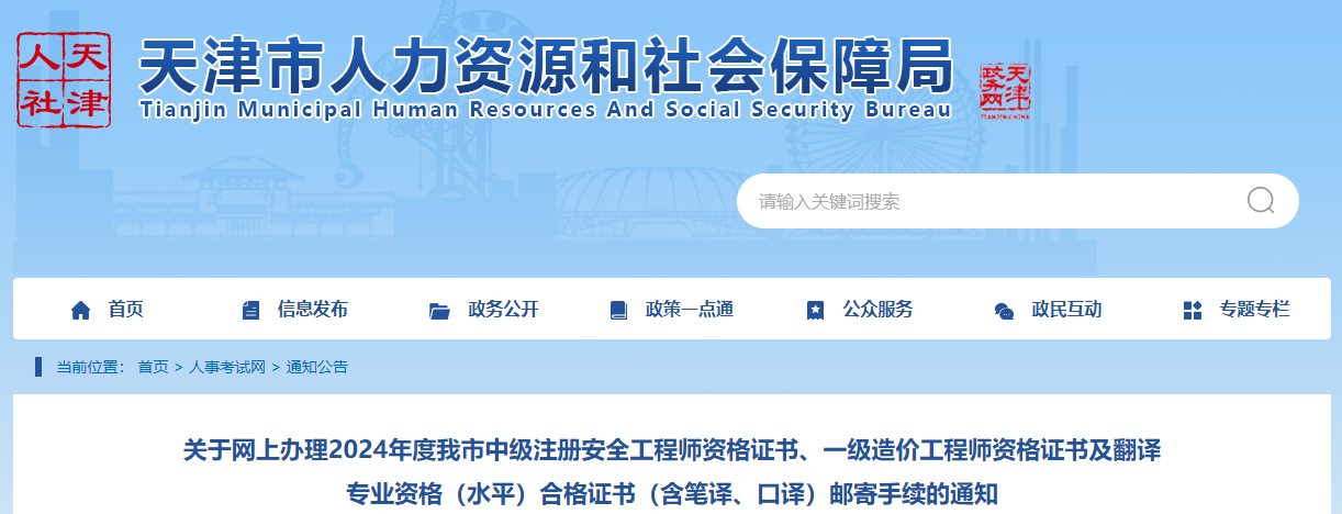 辦理2024年天津市一級(jí)造價(jià)工程師資格證書郵寄手續(xù)的通知