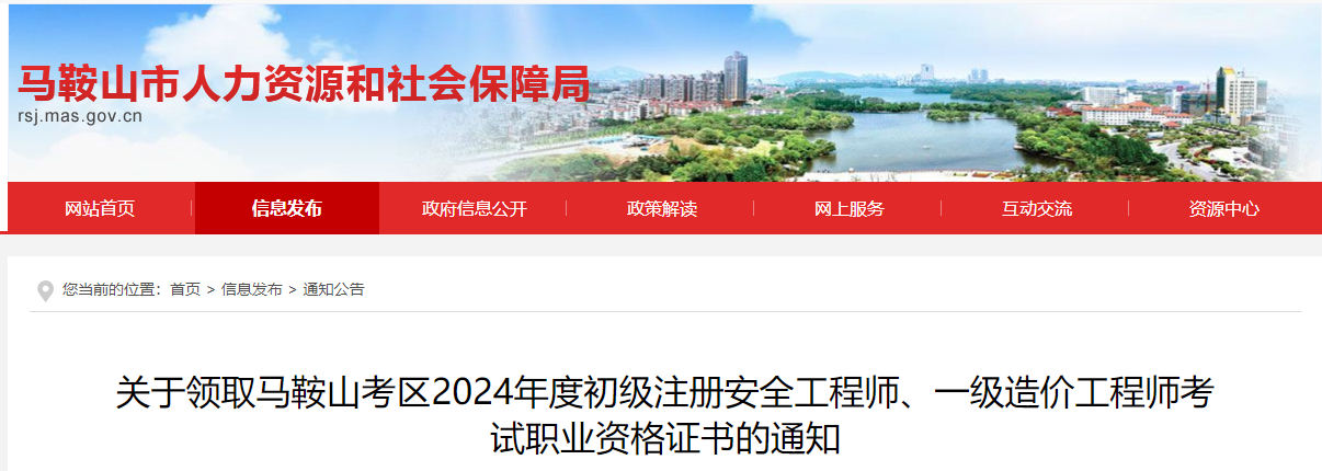 關(guān)于領(lǐng)取安徽馬鞍山2024年一級(jí)造價(jià)工程師考試資格證書的通知