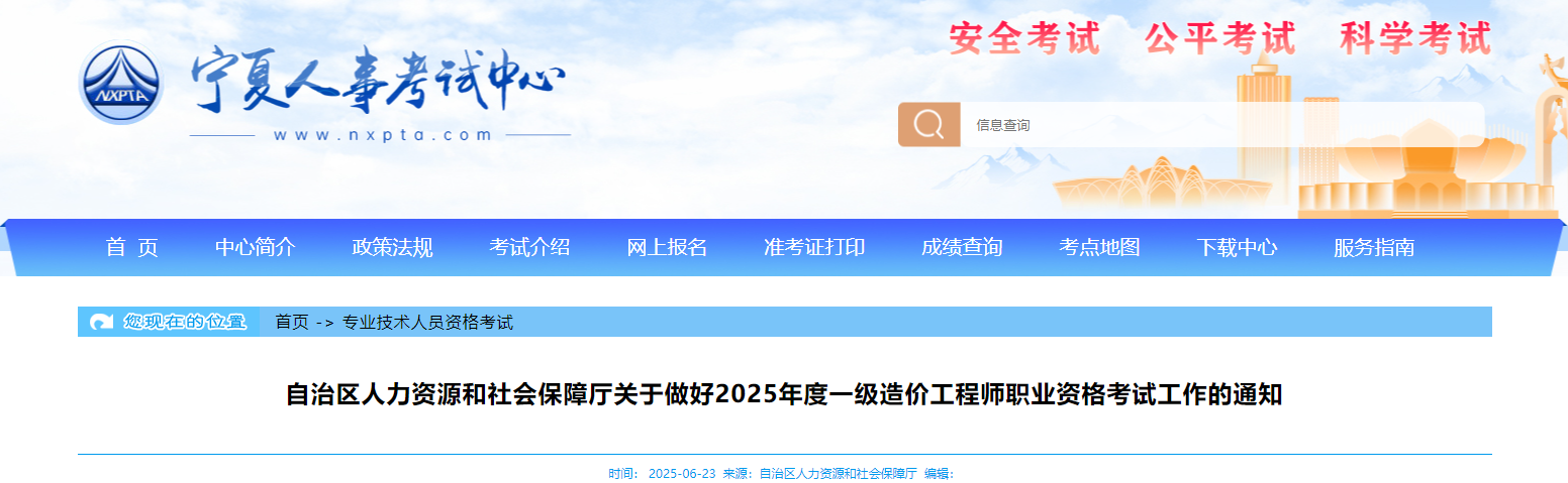 寧夏考區(qū)2025年度一級造價工程師職業(yè)資格考試工作的通知