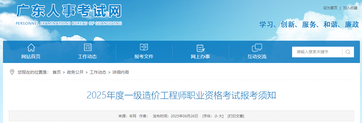 廣東考區(qū)2025年度一級(jí)造價(jià)工程師職業(yè)資格考試報(bào)考須知