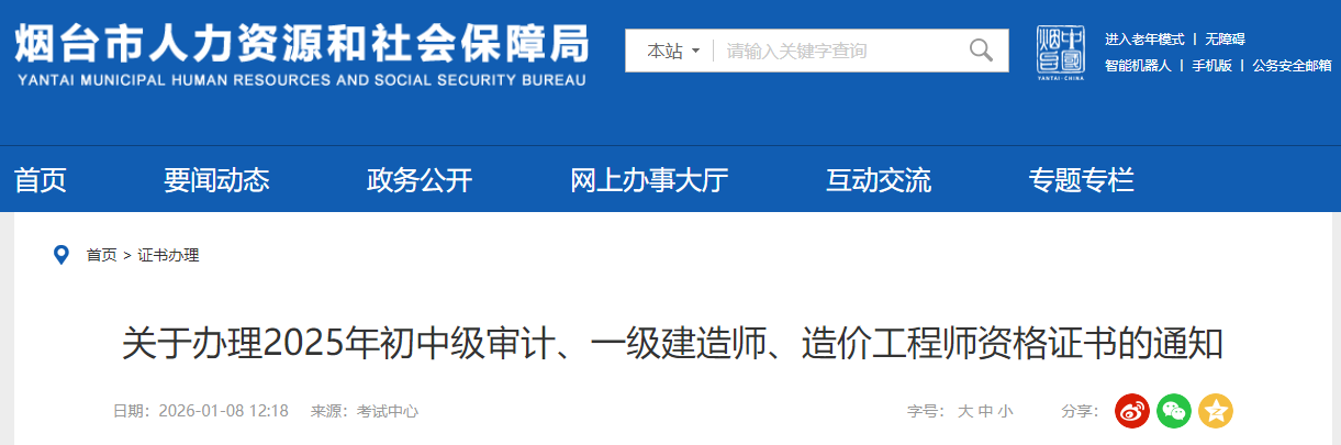關(guān)于辦理2025年初中級審計、一級建造師、造價工程師資格證書的通知