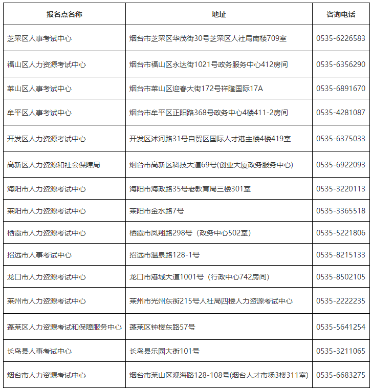 煙臺市各縣市區(qū)考試中心聯(lián)系電話及地址