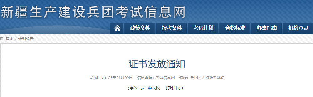 2、完成注冊(cè)后,兵直考生聯(lián)系本單位平臺(tái)管理人員下載使用,也可聯(lián)系兵團(tuán)人力資源考試院查詢領(lǐng)取電子證書,各師考生在所屬師局專業(yè)技術(shù)人員管理科(職改辦)領(lǐng)取,領(lǐng)取事宜咨詢各師,聯(lián)系方式見兵團(tuán)考試信息網(wǎng)首頁“通知公告”欄目。