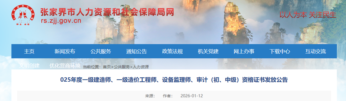湖南省張家界2025年一級造價工程師資格證書發(fā)放公告已發(fā)布,詳情如下: