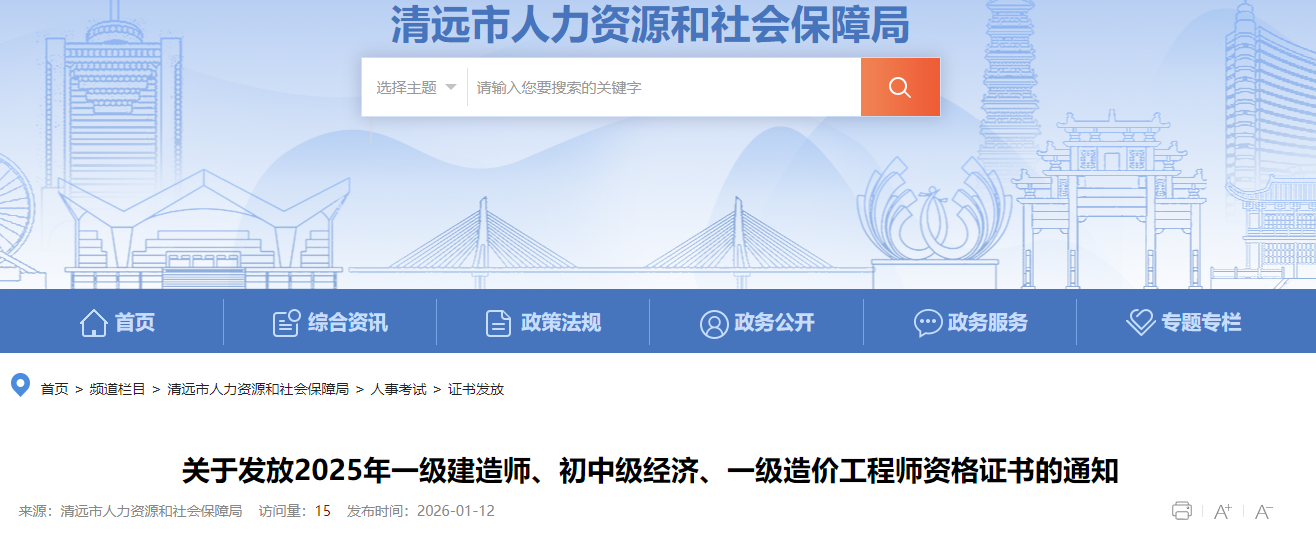 廣東省清遠(yuǎn)市2025年一級(jí)造價(jià)工程師資格證書(shū)發(fā)放通知