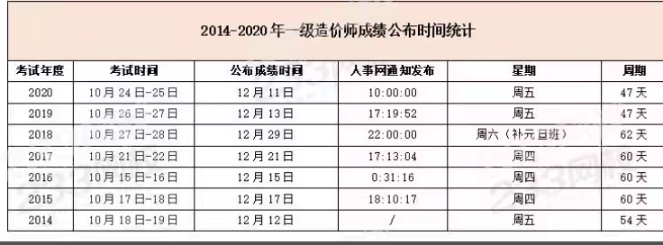 而歷年的一造成績(jī)公布時(shí)間如下圖: