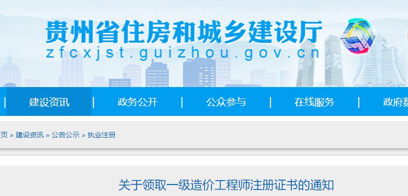 貴州省關(guān)于領(lǐng)取一級(jí)造價(jià)工程師注冊(cè)證書的通知