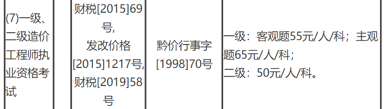 貴州省一級(jí)造價(jià)工程師執(zhí)業(yè)資格考試收費(fèi)目錄清單