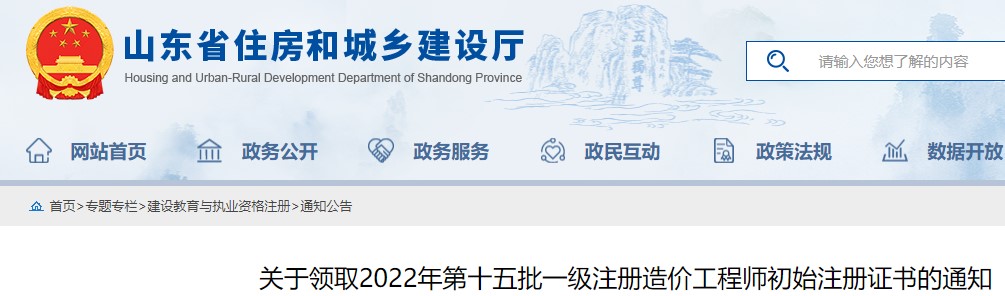 山東?關于領取2022年第十五批一級注冊造價工程師初始注冊證書的通知