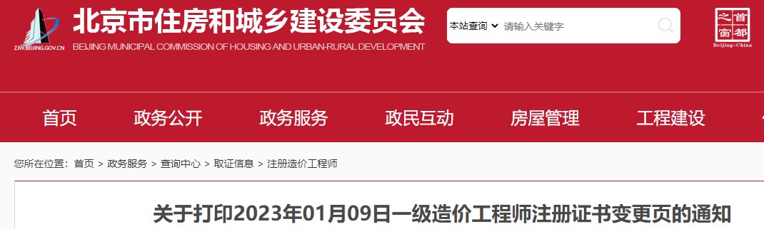 北京關(guān)于打印2023年01月09日一級(jí)造價(jià)工程師注冊(cè)證書變更頁的通知