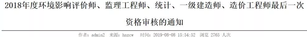 2018年度環(huán)境影響評價師、監(jiān)理工程師、統(tǒng)計、一級建造師、造價工程師最后一次資格審核的通知