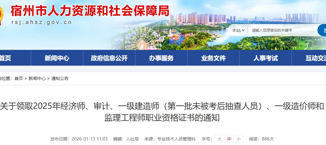 安徽省宿州市2025年度一級造價(jià)工程師資格證書領(lǐng)取通知