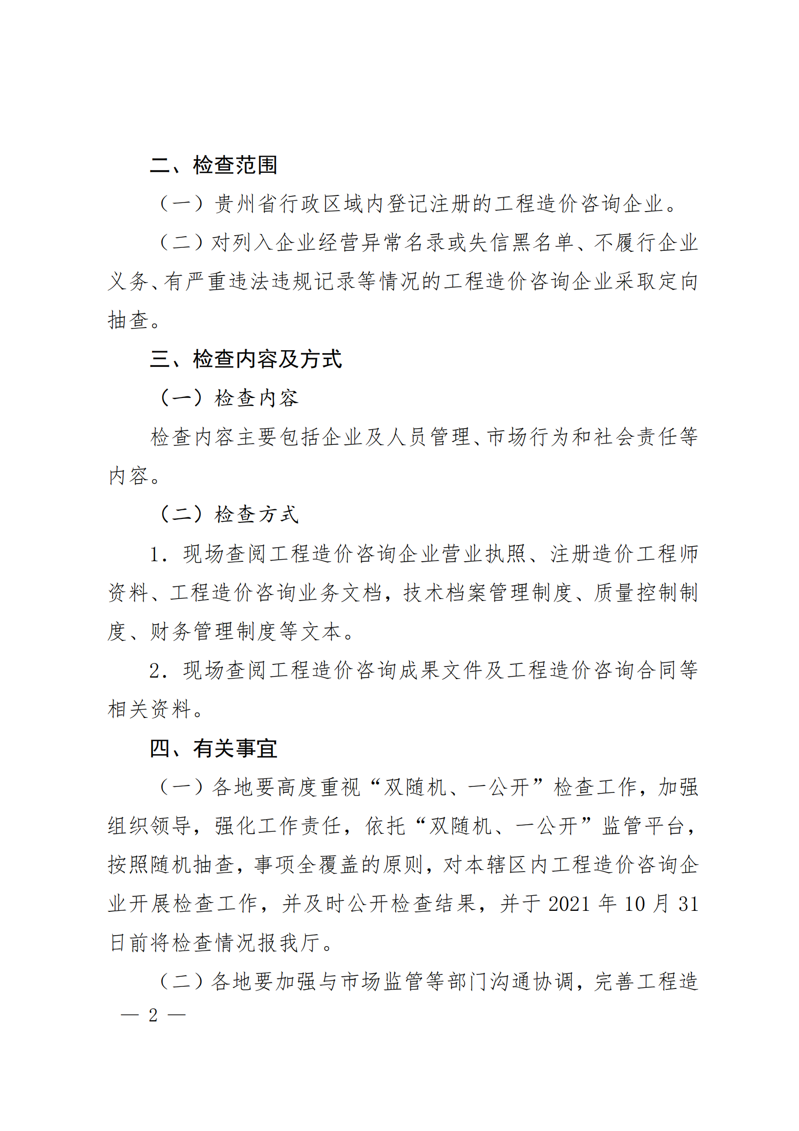 ?關(guān)于開展貴州工程造價咨詢企業(yè)“雙隨機(jī)一公開”檢查的通知
