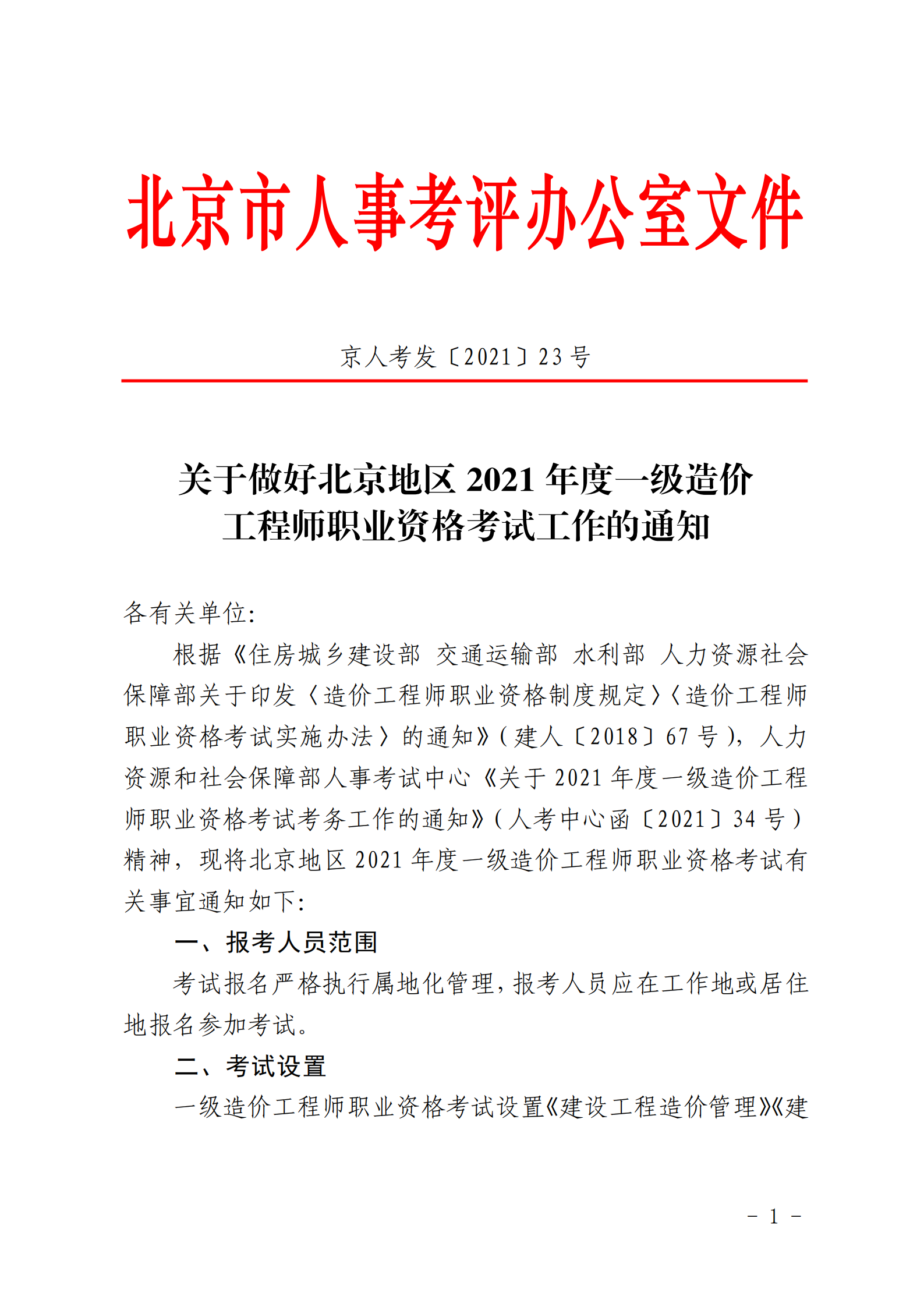 北京市2021年一級造價(jià)工程師考試報(bào)名時(shí)間為8月17日至23日