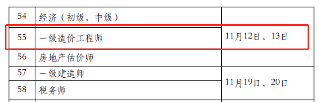 人力資源和社會保障部發(fā)布《人力資源社會保障部辦公廳關(guān)于2022年度專業(yè)技術(shù)人員職業(yè)資格考試計(jì)劃及有關(guān)事項(xiàng)的通知》,一級造價工程師考試時間為11月12、13日,詳情如下: