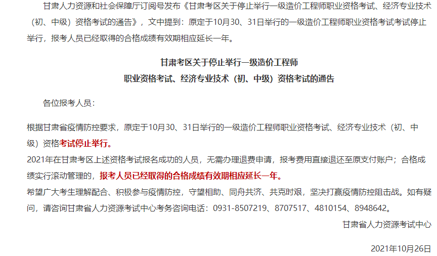 2021年10月26日,甘肅省人社廳發(fā)布了一條重要通知,那就是一級造價師??祭?!