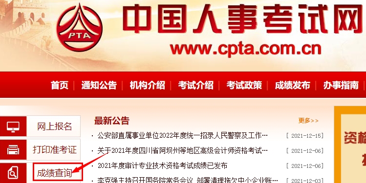 1、打開中國人事考試網(wǎng),點(diǎn)擊左側(cè)的“成績查詢”;