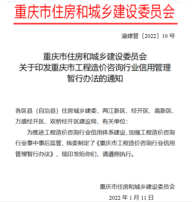 關(guān)于印發(fā)重慶工程造價(jià)咨詢行業(yè)信用管理暫行辦法通知,涉及一造、二造