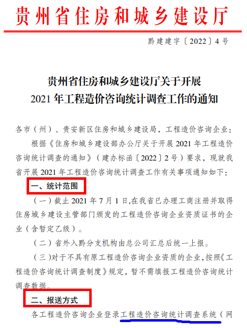 貴州住建部開(kāi)展2021年工程造價(jià)咨詢統(tǒng)計(jì)調(diào)查工作的通知