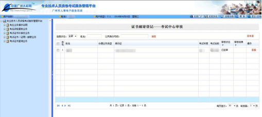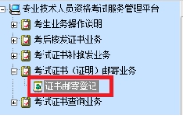 第三步:進入系統(tǒng)后,在界面左側(cè)選擇“考試證書(證明)郵寄業(yè)務”下的“證書郵寄登記”。
