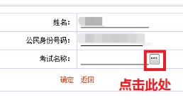 第五步:在打開的申請界面中,核對本人信息,并點擊考試名稱的選擇按鈕。