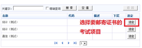 第六步:系統(tǒng)會自動彈出考生通過并可領取證書的考試項目,現(xiàn)在選擇想要郵寄證書的考試。