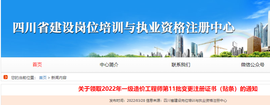 四川關(guān)于領(lǐng)取2022年一級(jí)造價(jià)師第11批變更注冊(cè)證書(貼條)的通知