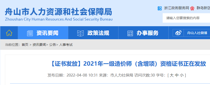 舟山2021年一級造價(jià)師(含增項(xiàng))資格證書正在發(fā)放