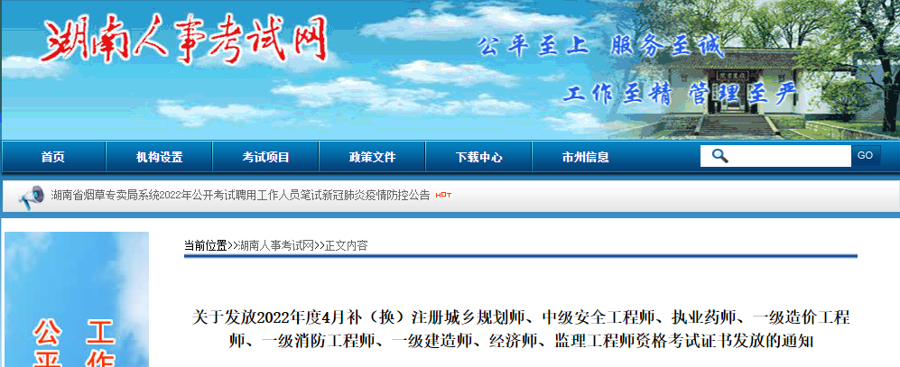 湖南發(fā)放2022年度4月補(bǔ)(換)一級(jí)造價(jià)工程師證書發(fā)放的通知