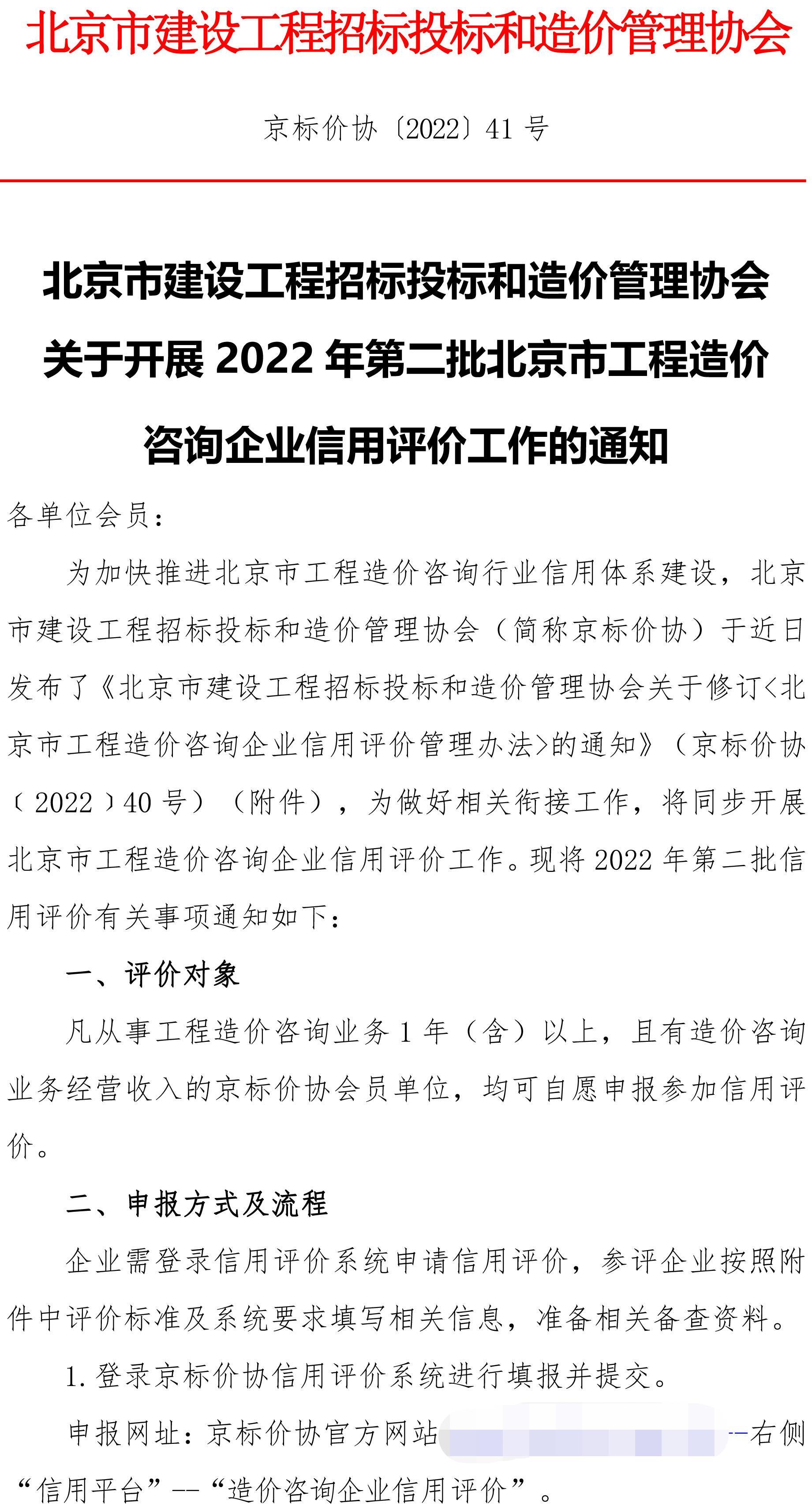 北京關(guān)于開展2022年第二批工程造價咨詢企業(yè)信用評價工作的通知