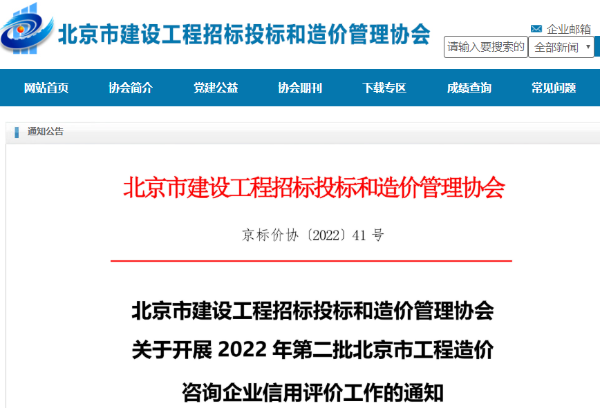 北京市建設(shè)工程招標(biāo)投標(biāo)和造價管理協(xié)會關(guān)于開展2022年北京市第二批工程造價咨詢企業(yè)信用評價工作的通知