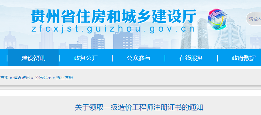 貴州關于領取2022年一級造價工程師注冊證書的通知