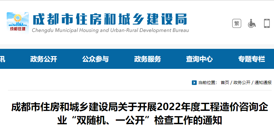 成都開展2022年工程造價咨詢企業(yè)“雙隨機(jī)、一公開”檢查工作的通知