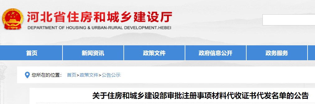 河北關(guān)于一級(jí)造價(jià)師審批注冊事項(xiàng)材料代收證書代發(fā)名單的公告