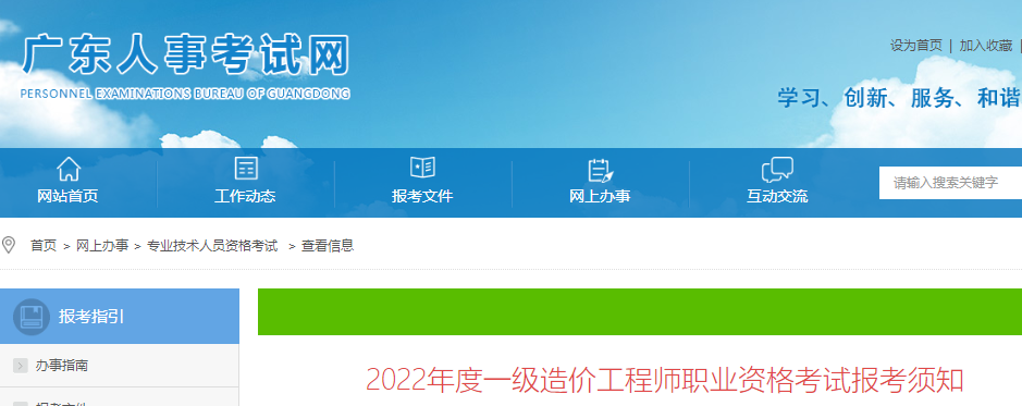 根據(jù)人力資源和社會保障部人事考試中心《關(guān)于2022年度一級造價工程師職業(yè)資格考試考務(wù)工作的通知》(人考中心函〔2022〕53號)和廣東省人力資源和社會保障廳《關(guān)于廣東省人力資源社會保障系統(tǒng)2022年度專業(yè)技術(shù)人員職業(yè)資格考試計劃及有關(guān)事項的通知》(粵人社函〔2022〕21號)要求,為方便廣大考生報考該項考試,現(xiàn)將有關(guān)事項告知如下。