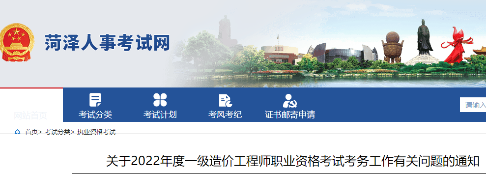 菏澤2022年一級造價工程師職業(yè)資格考試考務工作有關問題的通知