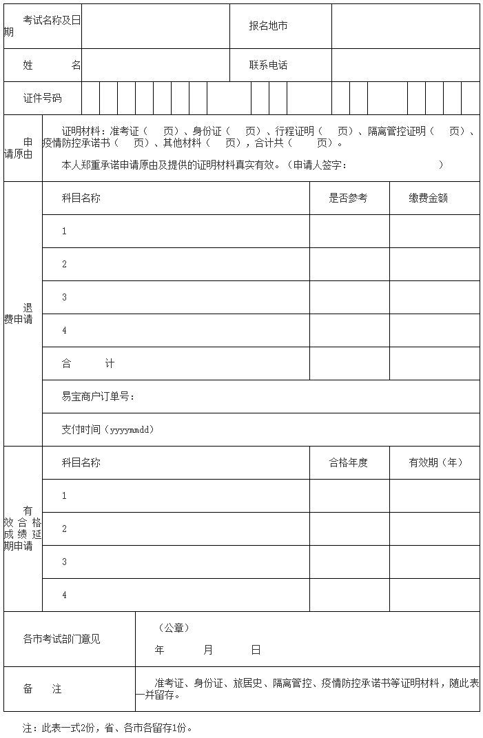 附:《因疫情管控?zé)o法參加考試人員相關(guān)業(yè)務(wù)申請表》
