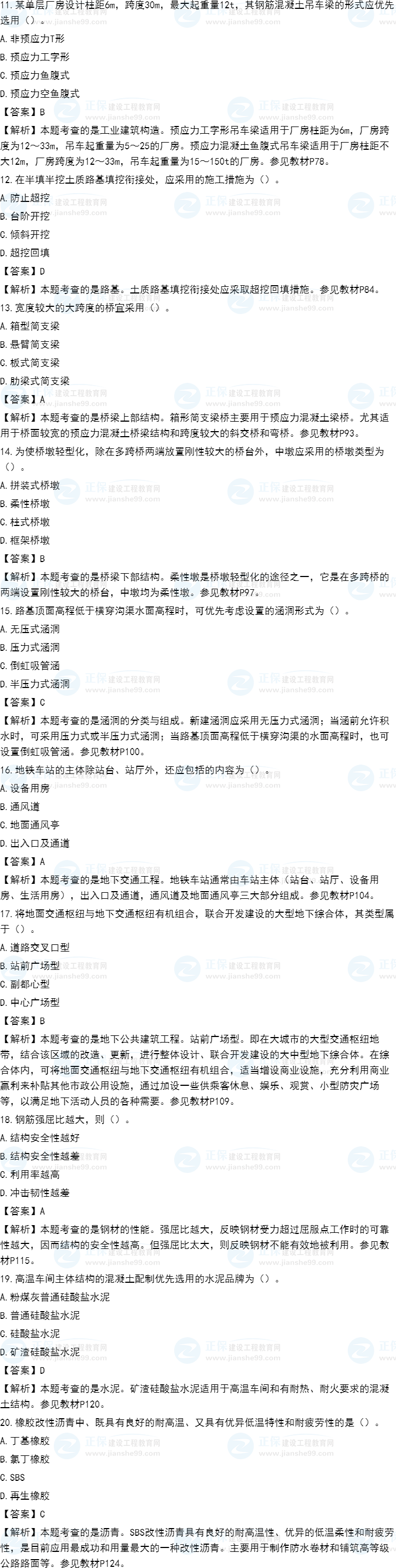 2021年一級造價(jià)師《土建計(jì)量》試題答案及解析11-20