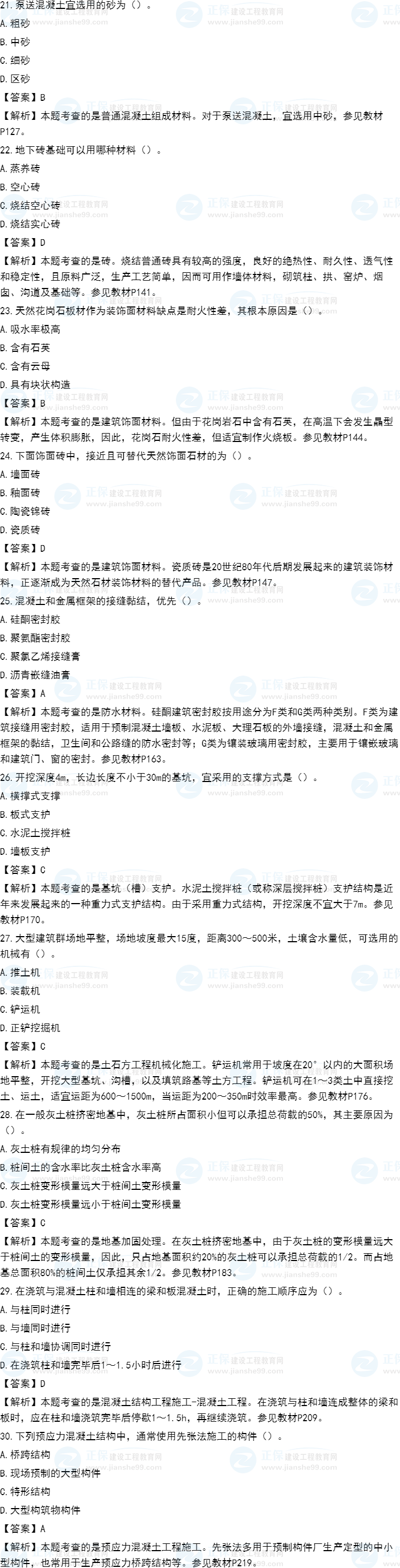 2021年一級造價師《土建計量》試題答案及解析21-30