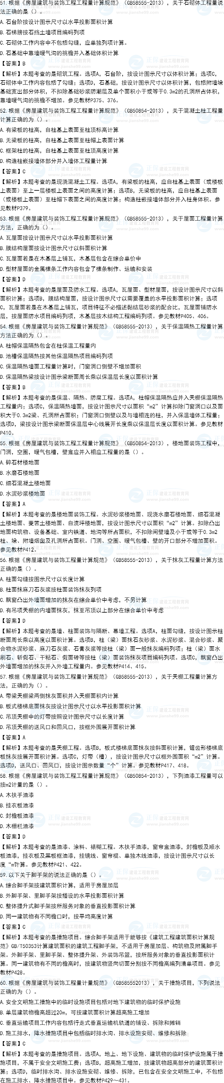 2021年一級(jí)造價(jià)師《土建計(jì)量》試題答案及解析51-60